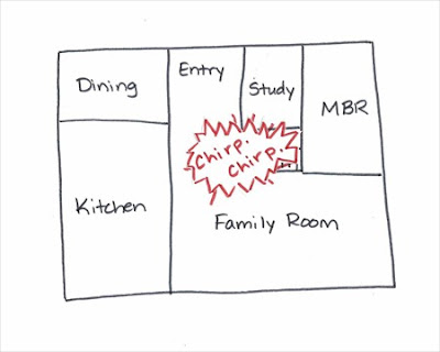 more running and more listening and more chirp. chirp.ing we finally narrowed it down to a smoke detector that we thought might be located near the middle of the house…