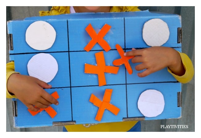 Look at what we came up with later on. The TIC TAC TOE Halloween Costume that you can actually play with. Those are sticky, yet they are from cardboard! Let the TRICK & TREAT & PLAY begin!
