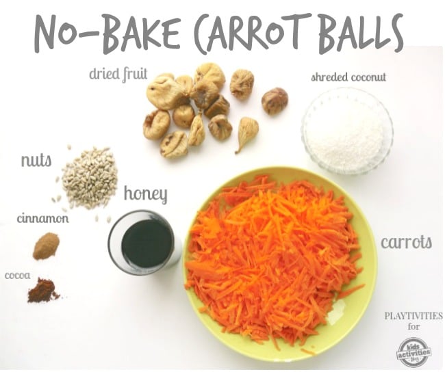 How about making a sweet AND healthy treat for your kiddos with carrots? Wait! It gets even better. It’s fast, easy and it doesn’t require baking or cooking. Plus, this is a great opportunity to teach your child