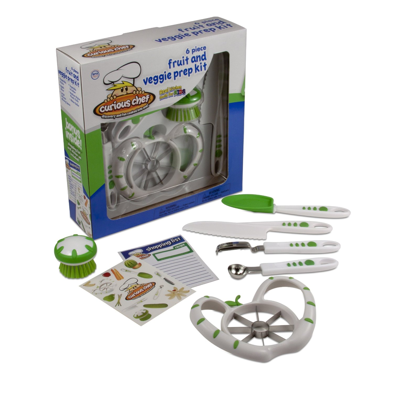 Cooking for a family with kids many times means cooking WITH kids. Use this safe veggie prep kit for kids. They will be happy to help, will learn a lot, and hopefully will be more excited to eat those cut up fruit and vegetables.