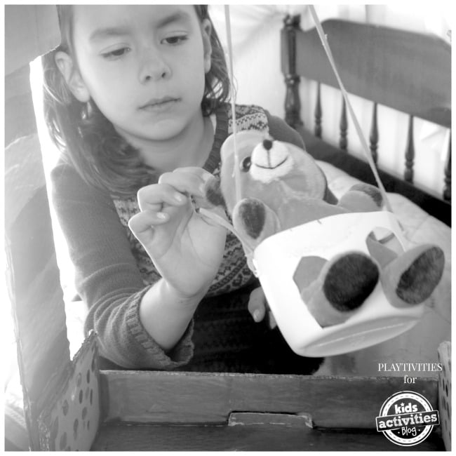 We Love This DIY Cardboard Baby Doll Toy Swing Craft