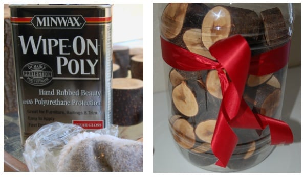 We are anticipating some major life changes and I am trying to prepare for the Winter as much as possible now, so even though these blocks are going to be the kids Christmas present, I let my son help. He loved dusting off the branches and wiping them with polyurethane. We gave the blocks two coats with the hopes that these will be outside “toys” and I wanted them to be able to withstand the elements.