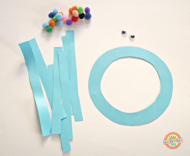 - For the octopus tentacles: Use strips of construction paper to glue to the bottom of the O to make tentacles.