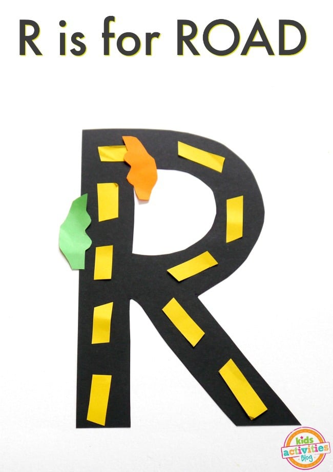 Preschoolers can either draw the letter R shape themselves or use our letter R template. Our favorite part of this letter craft is attaching construction paper lines and cars to make a road!