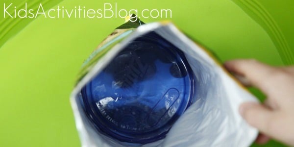 Note: ย The instructions say you may use a single serving chip bag and a smaller lid, but this is what I found at my house.