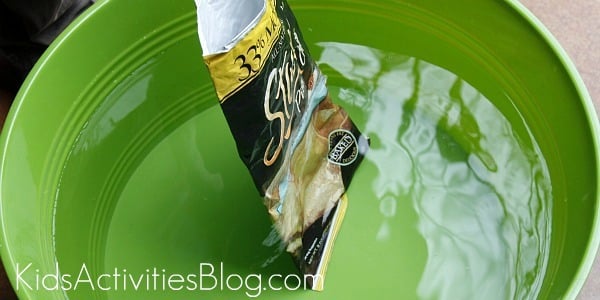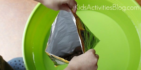 1. Load the pennies into the empty chip bag boat making sure they are evenly distributed.