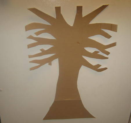 I thought it would be fun to put a cardboard tree with magnets on the refrigerator and have my