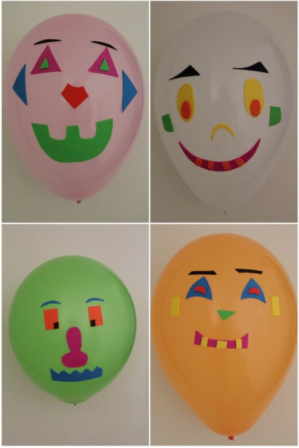 She has had a lot of balloons in her room for her 4th birthday. She has made some balloon drawings on some of those. And one of the balloon drawings she made had faces on it and I got an idea to further extend it. So I cut facial features from craft foam in various shapes. Here is the lot I cut…