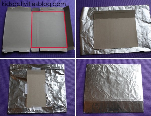 - Wrap the cardboard in aluminum foil.