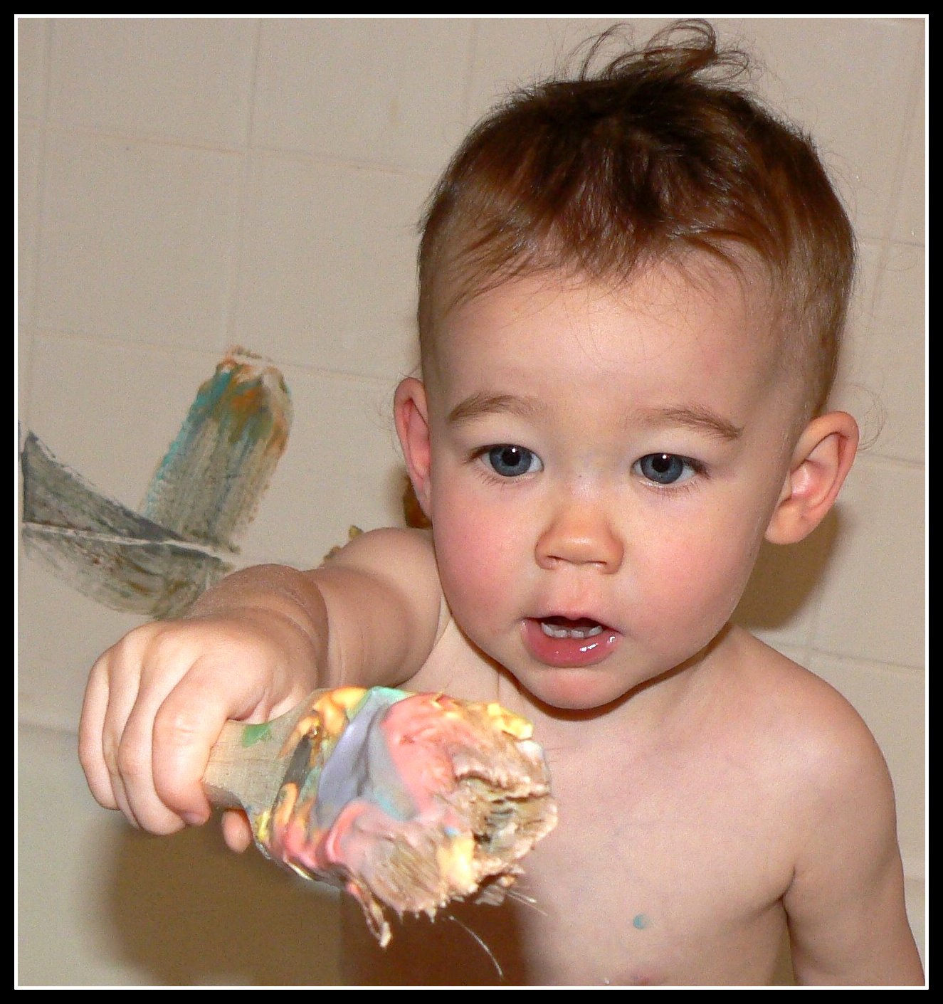 Don’t be surprised if your toddler’s own little body becomes the most colorful masterpiece. ย That’s definitely part of the fun!